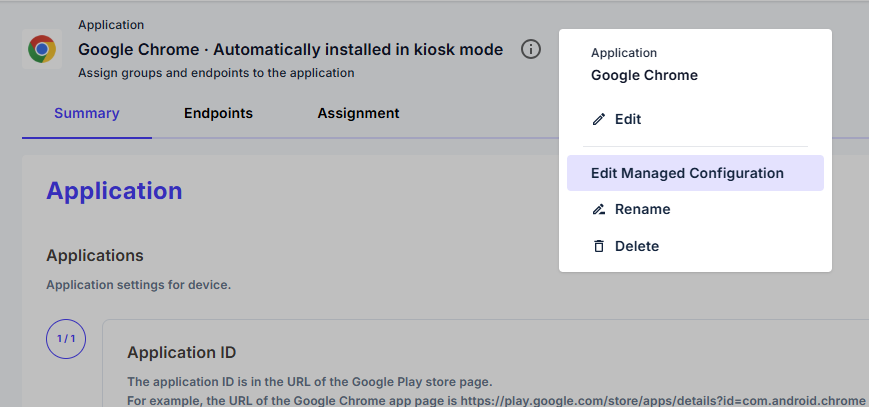 The Managed Configuration will automatically apply to devices once the associated app is installed and the configuration is linked to the device or group.