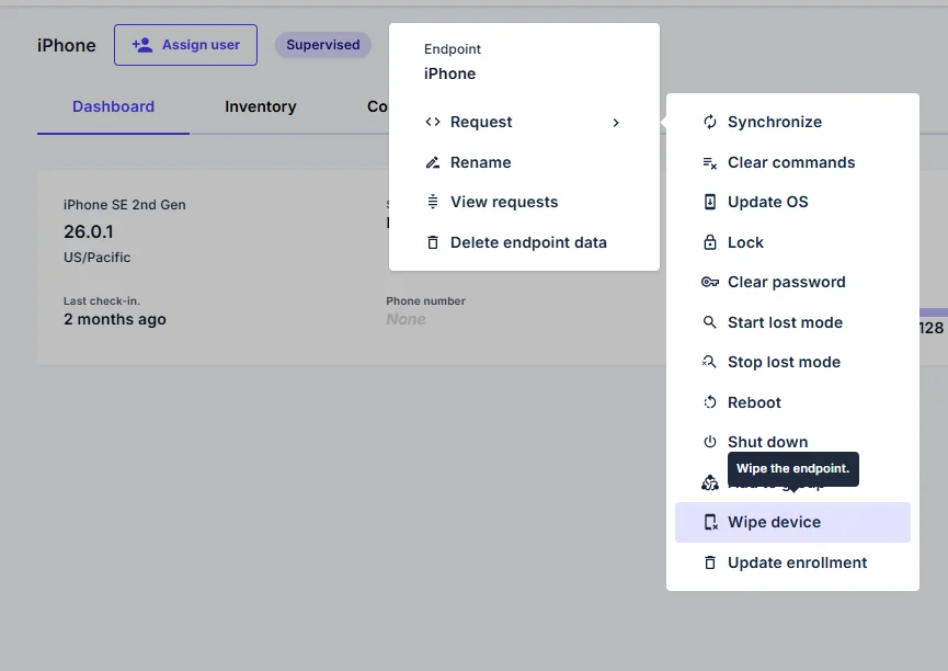 - Use Request → Wipe when you want a completely fresh start without any inherited policies.