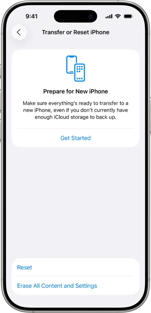 Settings → General → Transfer or Reset iPhone/iPad - Tap Erase All Content and Settings.