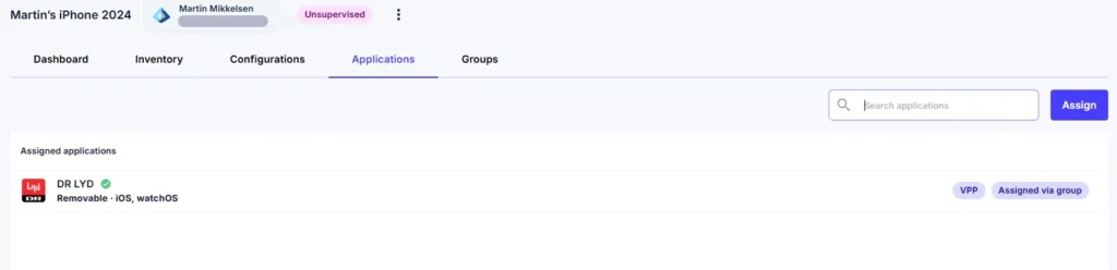 • Previously assigned apps