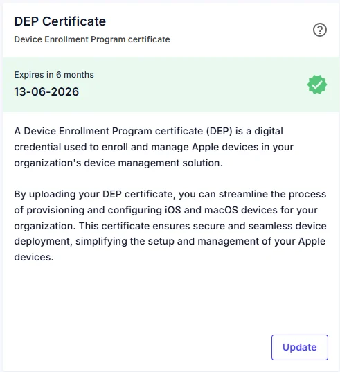 • In CapaOne, go to Apple → Certificates → DEP Certificate → Update.